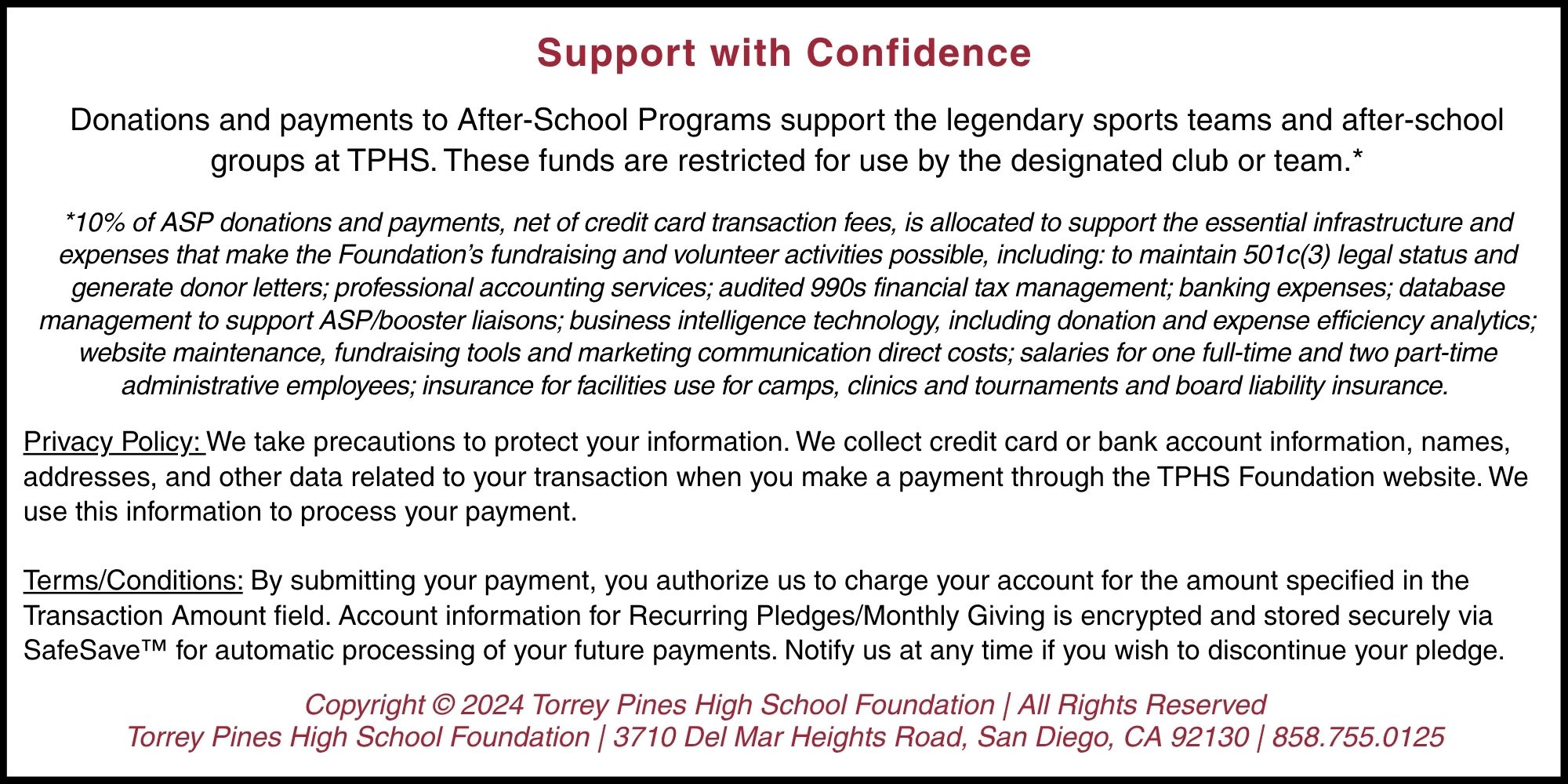 The Torrey Pines High School Foundation manages two separate categories of donations: