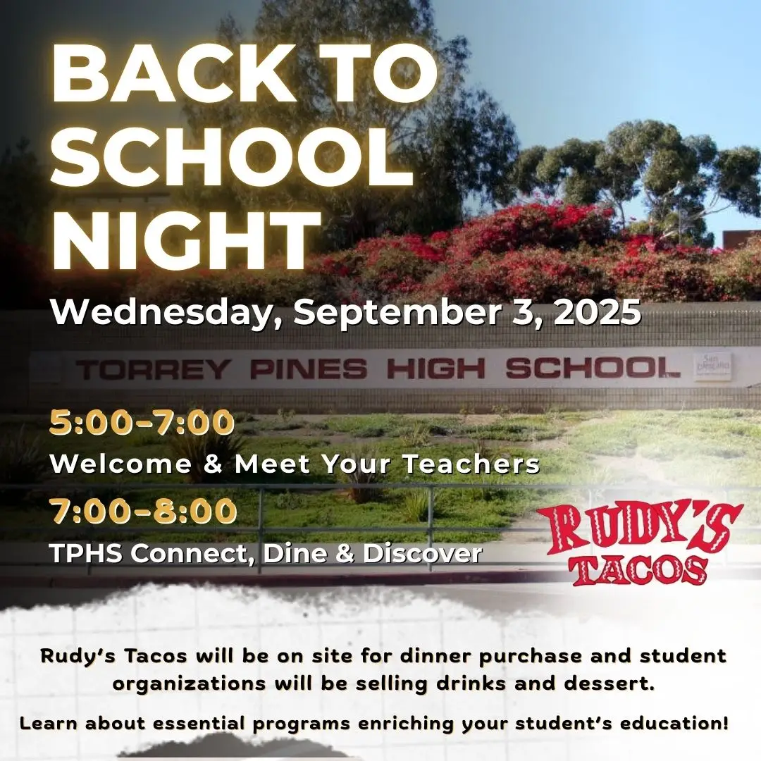 TPHS Back-to-School-Night Featured September 3, 2025 @ 5:00 pm - 8:30 pm TPHS 3710 Del Mar Heights Rd, San Diego, CA, United States FREE
